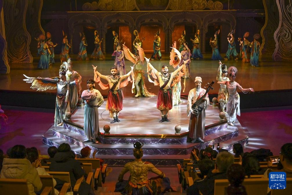 2026年1月9日,游客在甘肃敦煌观看大型洞窟沉浸式体验剧《乐动敦煌》。新华社发(张晓亮摄)