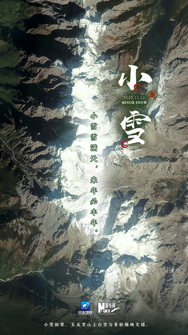 小雪:一候,虹藏不见;二候,天气上升,地气下降;三候,闭塞而成冬。