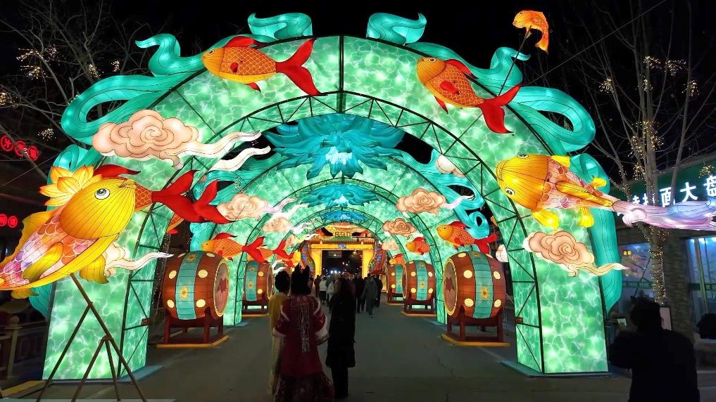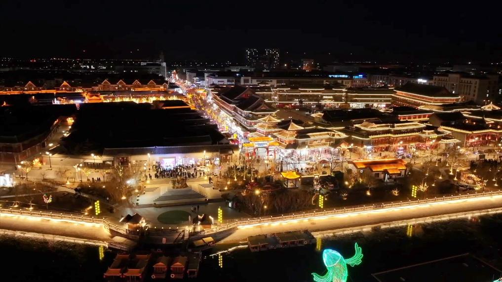 天津市西青区杨柳青古镇披上节日盛装,让每一位游客都能沉浸在浓浓的新年氛围中。